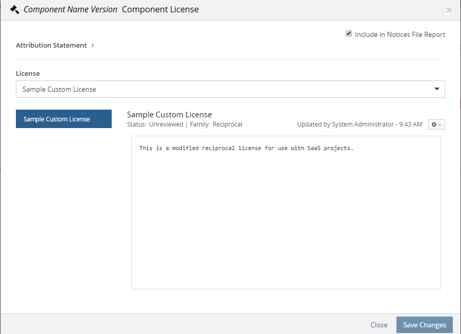 Modify the information shown for this custom license.
