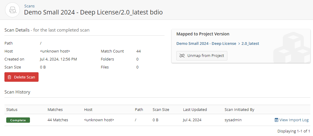 Note: The BOM Import Log will not display licenses missing, mapped, or not found for scans imported after 2024.7.0. However, they will continue to be displayed for scans imported prior to 2024.7.0.