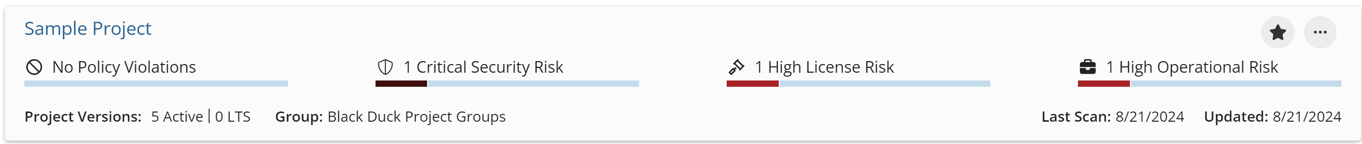 For example, the following shows that while there are components with lower risk, the highest security risk for this project version is High and that one component in this project version has a high level of security risk as their highest risk level: