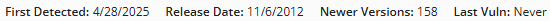 Last Vuln: The most recent date when a vulnerability was added to the list of vulnerabilities associated with a specific component version.